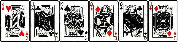I want you to mentally select any one of these six cards at random.