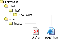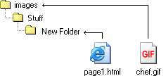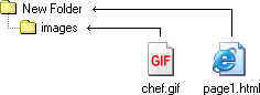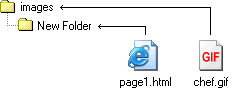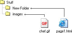 src="images/chef.gif" means that the image is one folder down from the html document that called for it. This can go on down as many layers as necessary. |