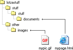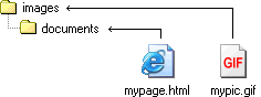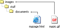 src="images/mypic.gif" means that the image is one folder down from the html document that called for it. This can go on down as many layers as necessary. |