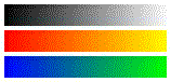 If both of the above images look about the same, then you are running a 256 color display and Netscape is dithering the image on the left to it's 216 colors. If the image on the left looks smooth but the image on the right looks all speckled, then you are running a high or true color display. The image on the left is a few simple gradients, saved in a low compression jpg format. In true color mode the gradient is very smooth and in high color mode it is still quite smooth (although the number of distinct colors falls to 419). The image on the right is a screen capture of the left image through 256 color mode.