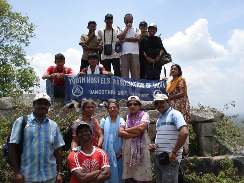 Sitting inside the Old Mallikarjuna Temple. Vegetable peeler in hand.